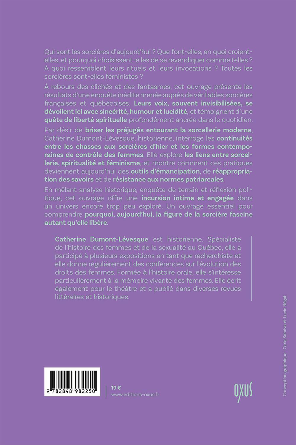 Qui sont les sorcières d’aujourd’hui ? Que font-elles, en quoi croient-elles, et pourquoi choisissent-elles de se revendiquer comme telles ? À quoi ressemblent leurs rituels et leurs invocations ? Toutes les sorcières sont-elles féministes ? À rebours des clichés et des fantasmes, cet ouvrage présente les résultats d’une enquête inédite menée auprès de véritables sorcières françaises et québécoises. Leurs voix, souvent invisibilisées, se dévoilent ici avec sincérité, humour et lucidité, et témoignent d’une quête de liberté spirituelle profondément ancrée dans le quotidien. Par désir de briser les préjugés entourant la sorcellerie moderne, Catherine Dumont-Lévesque, historienne, interroge les continuités entre les chasses aux sorcières d’hier et les formes contemporaines de contrôle des femmes. Elle explore les liens entre sorcellerie, spiritualité et féminisme, et montre comment ces pratiques deviennent aujourd’hui des outils d’émancipation, de réappropriation des savoirs et de résistance aux normes patriarcales. En mêlant analyse historique, enquête de terrain et réflexion politique, cet ouvrage offre une incursion intime et engagée dans un univers encore trop peu exploré. Un ouvrage essentiel pour comprendre pourquoi, aujourd’hui, la figure de la sorcière fascine autant qu’elle libère.